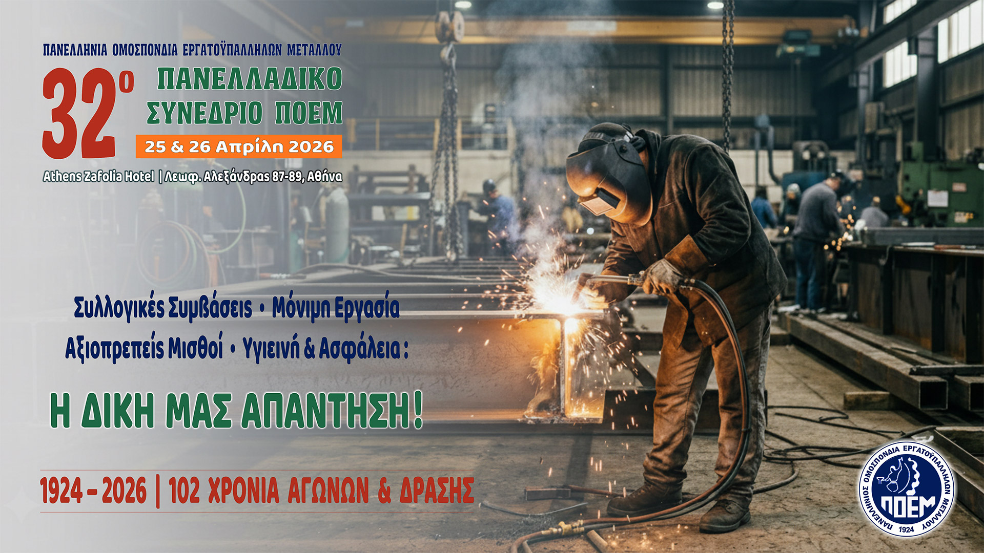 Η Π.Ο.Ε.Μ. ιδρύθηκε το 1924 στον Πειραιά. Στην μακρόχρονη πορεία της στάθηκε στις επάλξεις για την υπεράσπιση και προώθηση των συμφερόντων των μεταλλεργατών όλης της Ελλάδας. Είναι δευτεροβάθμια οργάνωση και είναι μέλος της ΓΣΕΕ. Μέλη της ΠΟΕΜ είναι πρωτοβάθμια σωματεία, εργοστασιακά και κλαδικά, σε επιχειρήσεις όπως Ναυπηγεία, Χαλυβουργίες, Μεταλλικές Κατασκευές, Συρματουργίες, Καλώδια, Αεροδιαστημική, Τηλεπικοινωνίες κ.λ.π.