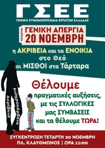 Σε αυτή τη δύσκολη συγκυρία, το Συνδικαλιστικό Κίνημα της χώρας έχει την ιστορική ευθύνη να ανασυνταχθεί και να οργανώσει τη μαζική αντίσταση ενάντια στις πολιτικές που πλήττουν τις ζωές των εργαζομένων. Διεκδικούμε: